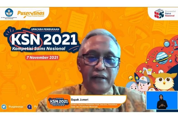 Direktur Jenderal Pendidikan Anak Usia Dini, Pendidikan Dasar, dan Pendidikan Menengah (Dirjen PAUD Dikdasmen), Jumeri mengungkapkan kebahagiaannya saat menyapa para peserta KSN 2021. “Selamat kepada kalian semua yang selalu berjuang, bersemangat belajar dan membangun atmosfer positif untuk terus berprestasi walaupun masih berada pada situasi pandemi dan keterbatasan. Teruslah merdeka dalam memunculkan mimpi, merealisasikan talenta dan mempersiapkan diri untuk menghadapi masa depan,” terang Dirjen Jumeri dalam keterangan pers, Selasa (9/11/2021). Pandemi yang masih dihadapi hingga saat ini, pesan Jumeri, agar dijadikan momen oleh semua para pemangku kepentingan pendidikan untuk lebih perhatian lagi kepada sains untuk mencari solusi dari permasalah-permasalahan yang akan dihadapi di masa depan. “Harusnya krisis ini menjadi pendorong kita untuk terus berprestasi meningkatkan kemampuan dan penguasaan kita di bidang sains,” ujar Dirjen Jumeri.