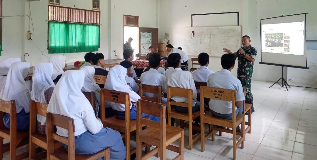 Amuntai Utara – Babinsa Koramil 1001-06/Amuntai Utara, Kodim 1001/HSU-Balangan Serma Sutrisno mengadakan sosialisasi tentang Rekrutmen TNI AD kepada siswa kelas XII SMA Negeri 1 Amuntai Utara, Desa Teluk Daun Kecamatan Amuntai Utara Kabupaten Hulu Sungai Utara. Senin (20/03/2024).