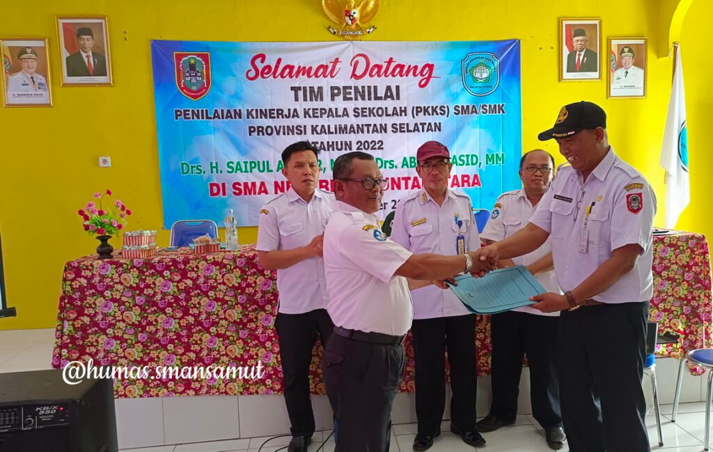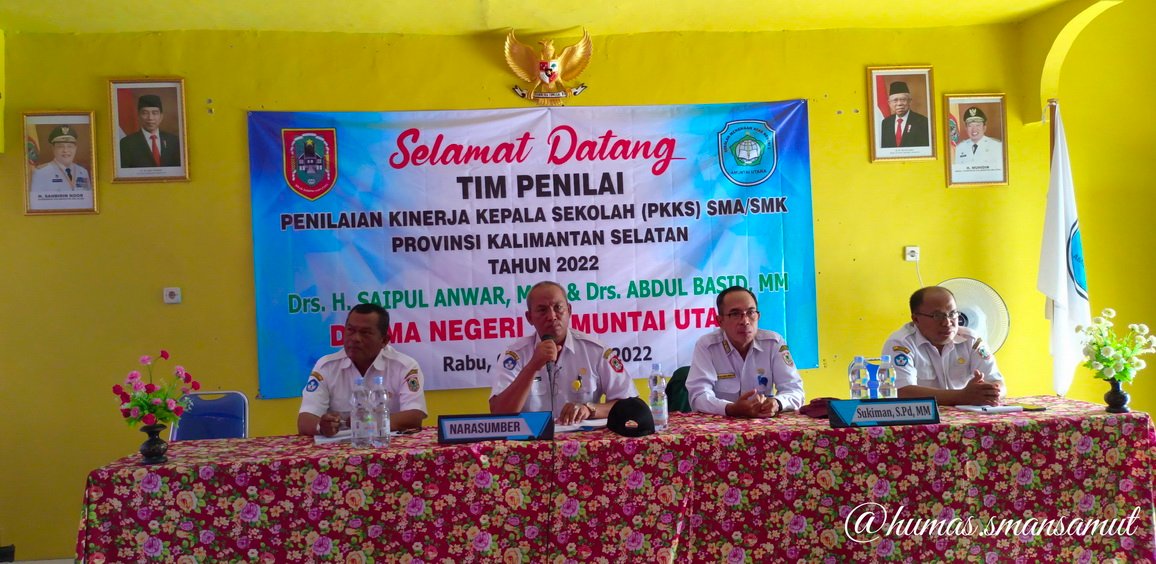 SMAN1AU.SCH.ID – Ruang Aula SMA Negeri 1 Amuntai Utara menjadi wadah kegiatan Penilaian Kinerja Kepala Sekolah (PKKS) pada hari Rabu, 7 Desember 2022 di bawah penilaian Tim Asesor Pengawas Dinas Pendidikan dan Kebudayaan Provinsi Kalimantan Selatan.