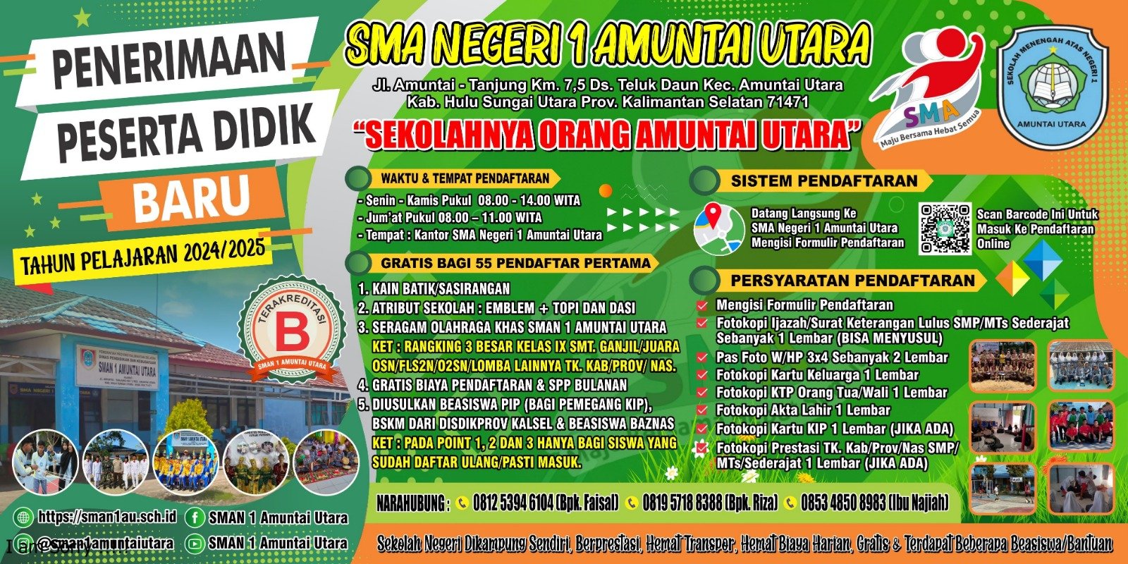 Proses Penerimaan Peserta Didik Baru (PPDB) di SMAN 1 Amuntai Utara di mulai pada Senin (26/02/2024). PPDB ini dilakukan secara online dan offline.